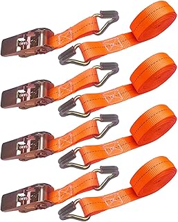 Premium Ratchet Straps - 4 Pack, Orange - 4 Meters Ratcheting Lashing Straps - H..