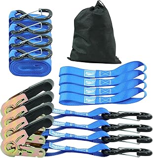 LOLYSIC 4Pcs Ratchet Straps, 25mm x 6M Heavy Duty Ratchet Tie Down Straps, No Ho..