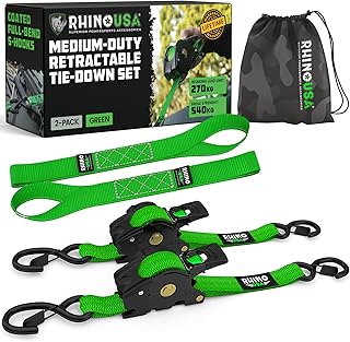 Rhino USA Retractable Ratchet Straps (2-Pack) - 5cm x 3m (1,360kg Break Strength..